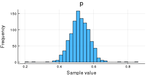 chain = sample(coinflip(data), HMC(iterations, ϵ, τ));